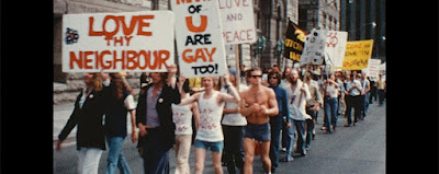 Of the seven screenings I attended, I have to say that the Canadian documentary Parade: Queer Acts of Love & Resistance by director Noam Gonick was the best and most rewarding. A thoughtful, engrossing documentary, it chronicles using crucial archival footage the fights over the years by various segments of Toronto’s and Canada’s 2SLGBTQ+ community at resisting and overcoming societal and police oppression to become stronger and liberated - to eventually take to the streets proudly as we do every year through Pride parades. First, the queers of the 60s and 70s fought back against constant police attacks, and used the experiences of the 1960s civil rights movements as inspiration. One segment’s gains inspired another still oppressed segment, such as 2S individuals to also fight back and earn respect. Toronto had its Stonewall in the early 80s after the community fought back against police raids of our bath house spaces. These attacks on our community served to unite us together in solidarity, one of the key themes of the film.![]() |